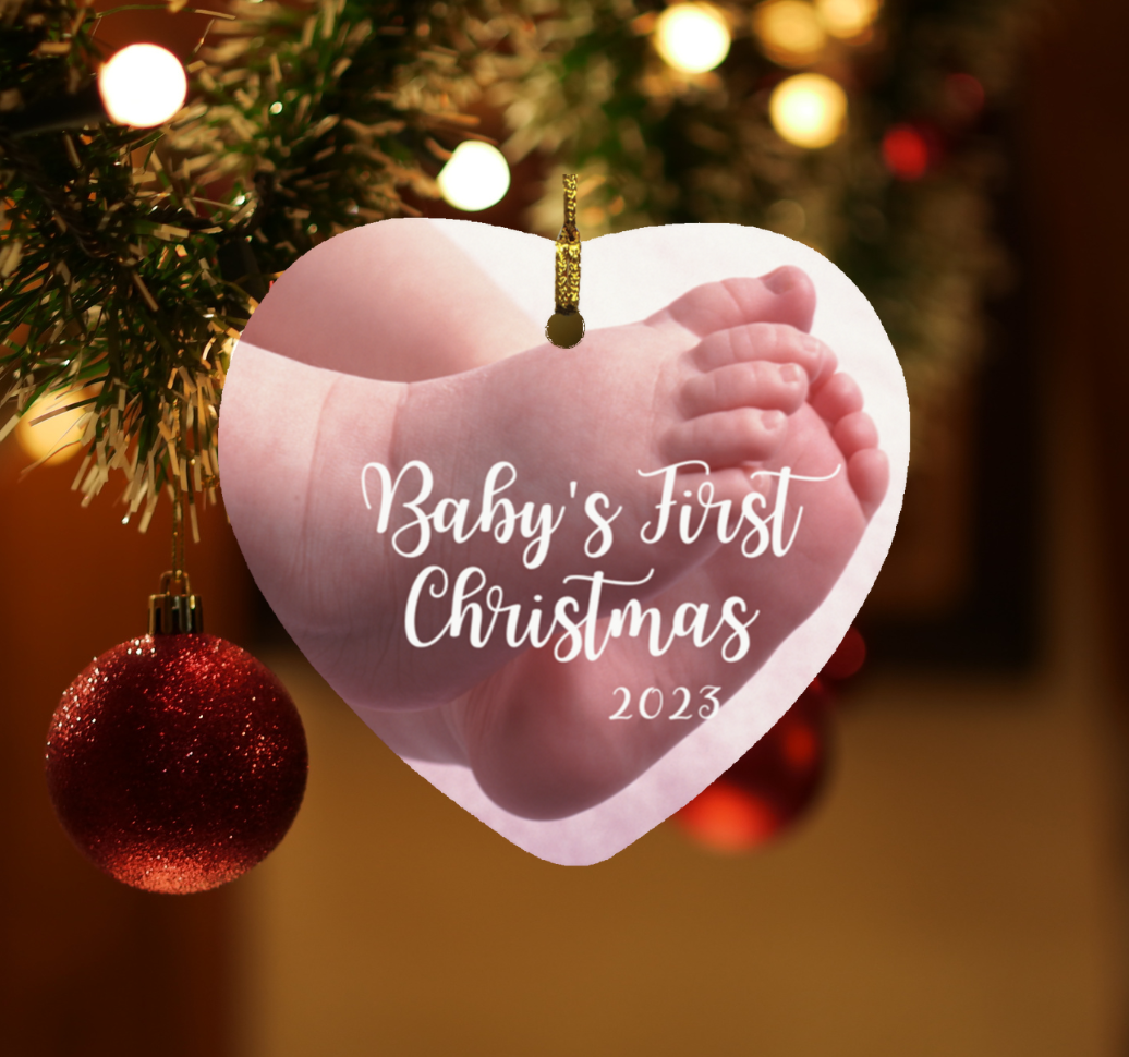 Baby's First Christmas - Bare Feet | Heart Shaped Ornament | 2023