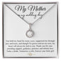 Message card reads: My Mother | on my wedding day | You held my hand for many years, supported me through the joys and tears, and though I'm grown and on my own, my heart will always be tied to you. Thank you for your unending support, guidance, patience and infinite love. Today a bride, Tomorrow a wife, Forever your little girl!