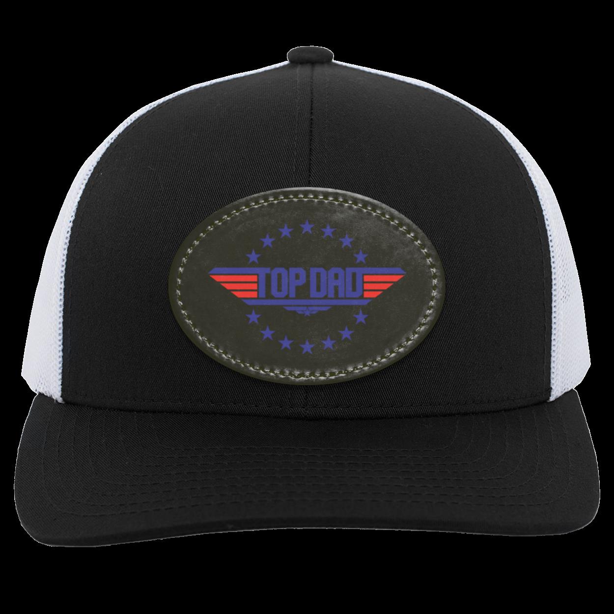 Dad | Top Dad - Black Oval Patch | Trucker Snap Back Hat